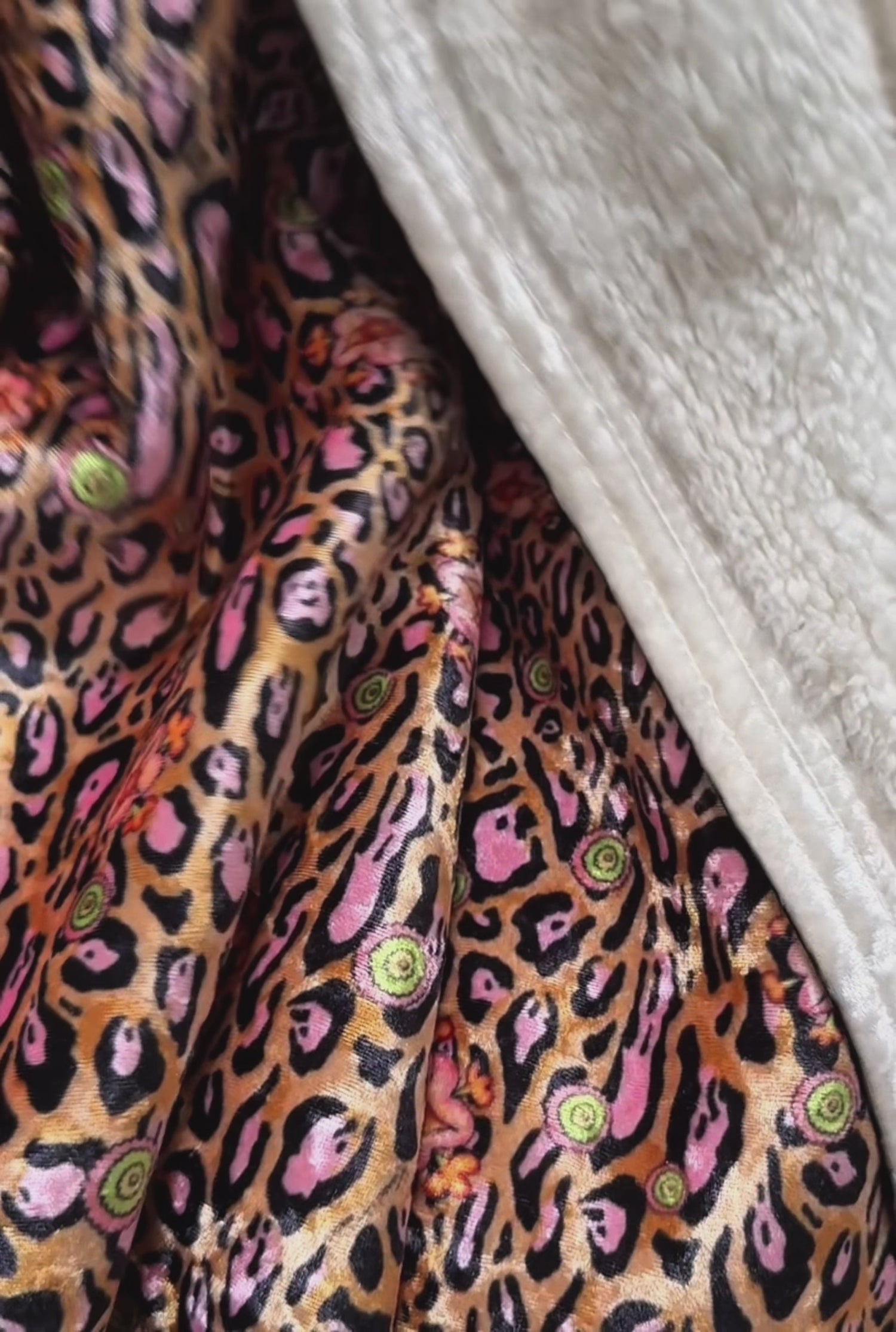 LEOPARD LOTUS BLOSSOM COZY DOUBLE FACED THROW BLANKET
