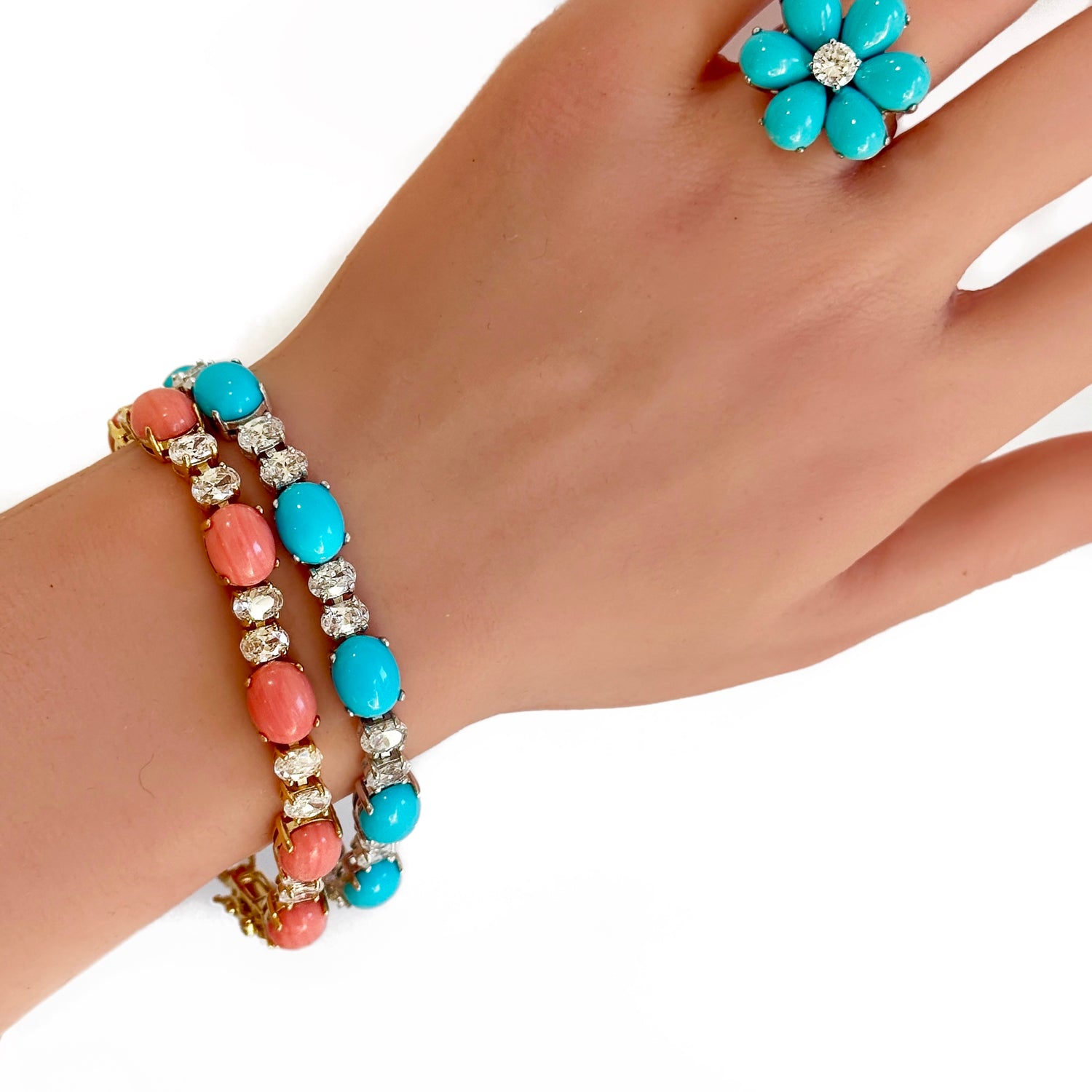 Lush Peachy Cream Coral and Vibrant Turquoise Cabochons